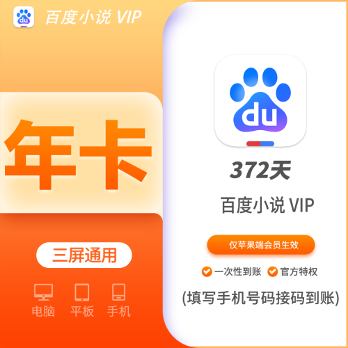 【火爆】百度小说会员年费12个月 限苹果端 支持叠加