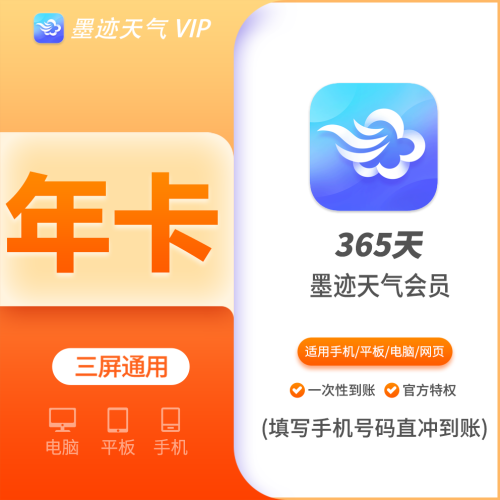 【火爆】墨迹天气会员年费12个月 直冲无需接码 到期后可继续下