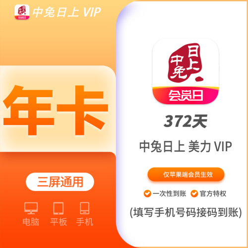 【火爆】中兔日上美力会员年费12个月 支持叠加
